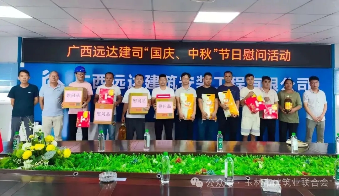 金秋雙節(jié)至,關(guān)懷暖一線。10月3日,我會(huì)常務(wù)副會(huì)長(zhǎng)單位廣西遠(yuǎn)達(dá)建筑安裝工程有限公司董事長(zhǎng)陳堅(jiān)帶領(lǐng)管理層團(tuán)隊(duì),到平南縣第三人民醫(yī)院項(xiàng)目,為堅(jiān)守崗位的項(xiàng)目部員工送上中秋月餅及節(jié)日祝福,用腳步丈量責(zé)任,用陪伴傳遞企業(yè)溫暖。